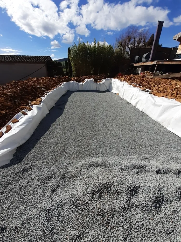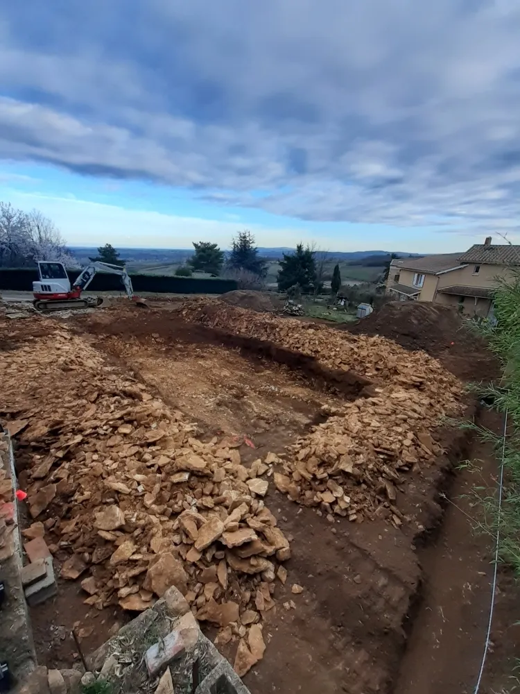 Après un terrassement et un réglage de fond de fouille pour la pause d'une piscine coque à Cogny, l'entreprise de terrassement à réalisé ce projet avec la collaboration de l'entreprise Flore Et Sens à Denicé.